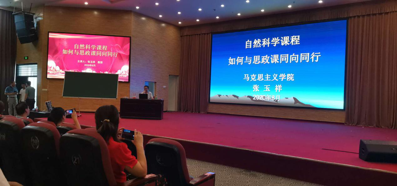 8月3日上午,太阳成集团tyc33455cc张玉祥教授为全校教师作题为《自然科学课程如何与思政课同向同行》专题报告。各学院(系、部)分管教学领导、教研室主任及部分教师代表、行政部门教职工代表,教务处、教师发展中心等相关工作人员聆听了此次报告。